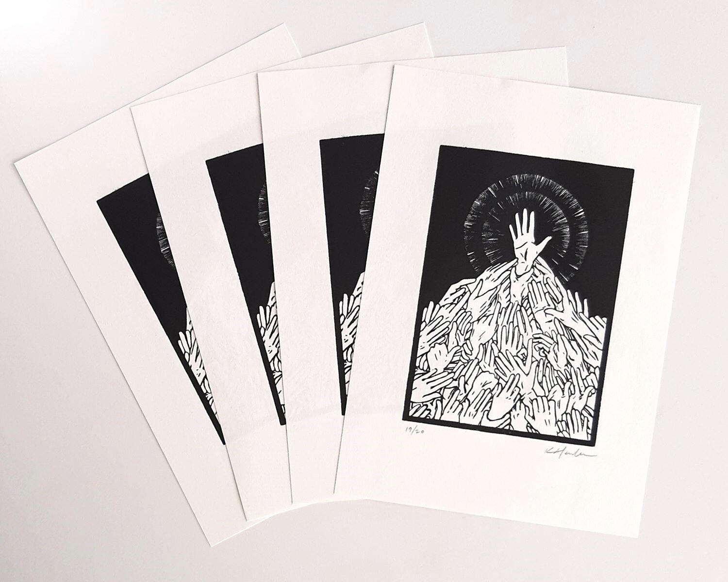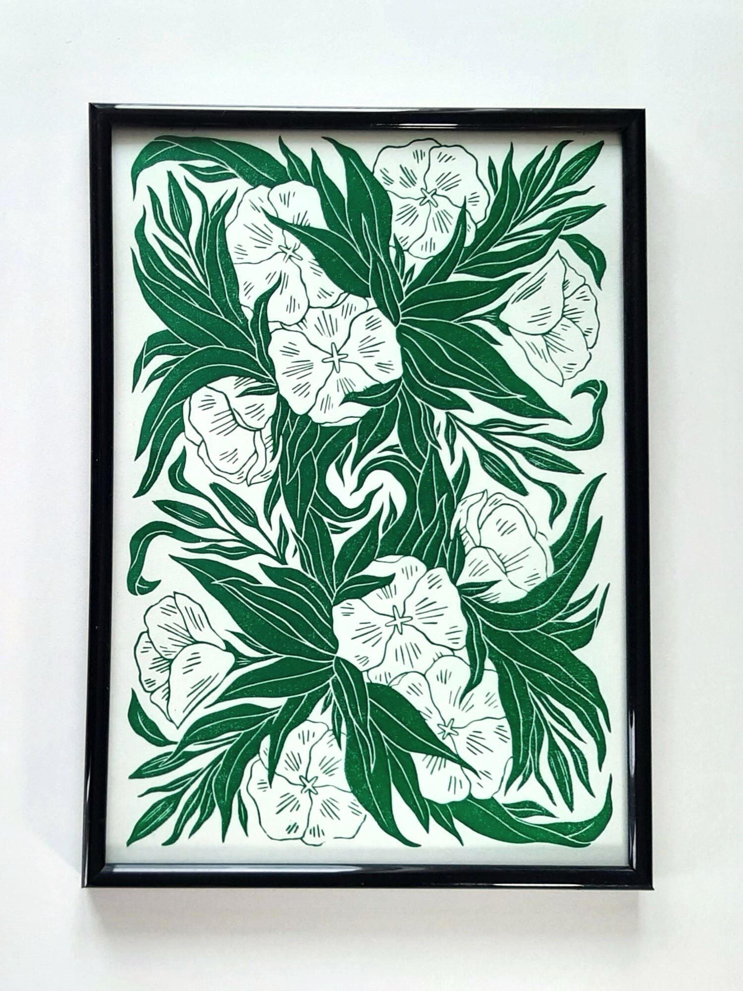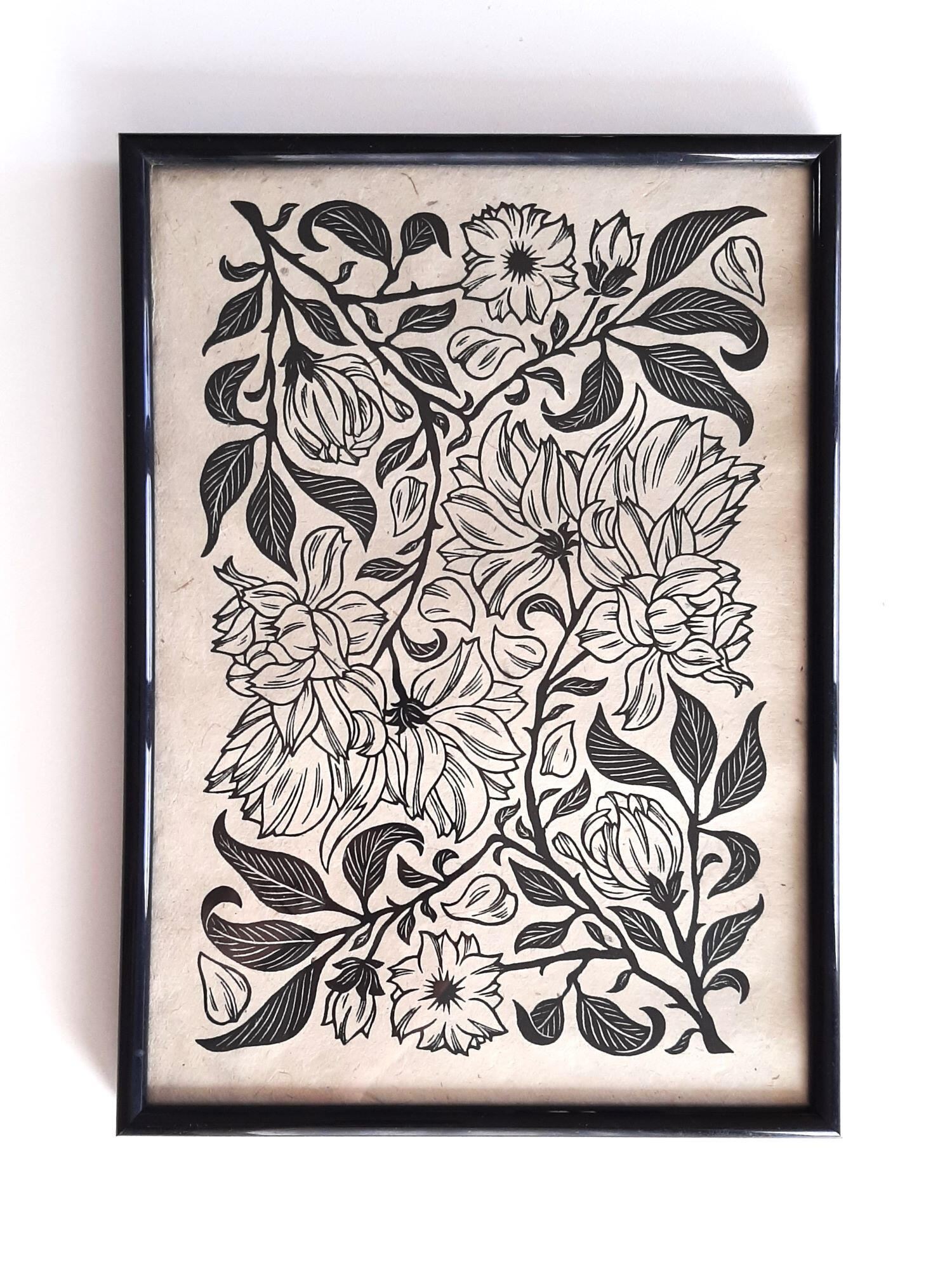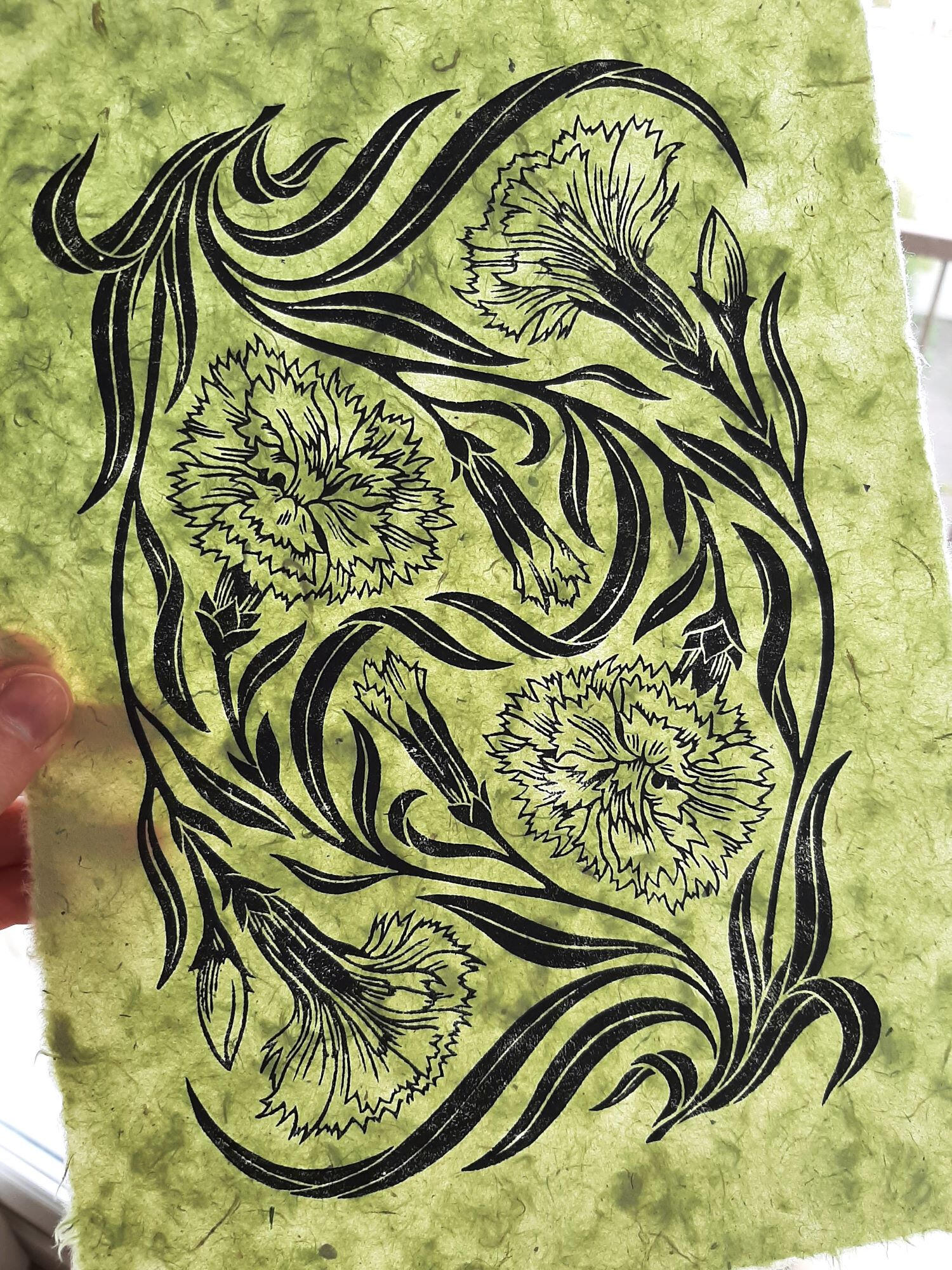 Katie, 31, illustrator and linocut printmaker based in Paris. Frequent subjects include floral and ornamental art, beasts and creatures, anatomy, and fanart. Not currently taking commissions but suggestions are always welcome!Katie, 31, est une artiste en linogravure basée à Paris. Ses sujets communs incluent l'art botanique et ornemental, les bêtes et les créatures, l'anatomie humaine et animale, et fanart/portraits/illustrations divers. Elle n'accepte pas actuellement les commissions, mais n'hésitez pas à faire des suggestions par email ou sur les réseaux !